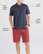 Featuring our evaporative cooling tech and UPF 50+ sun protection, our DropTemp® All Day Cooling Polo keeps you cool, sun-safe, and sweat-free during hot days outside.