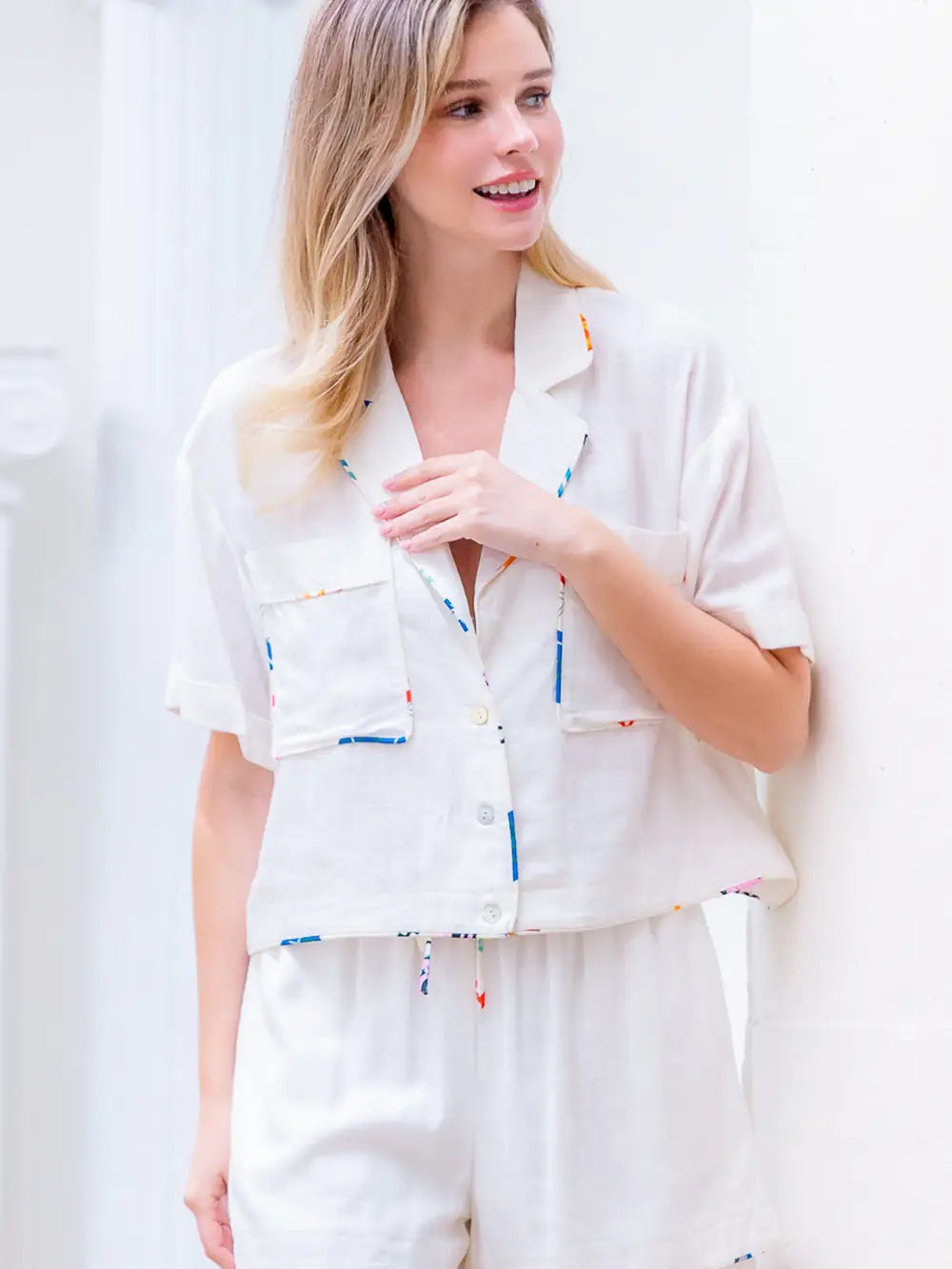 White Collared Button-Down Short Set
