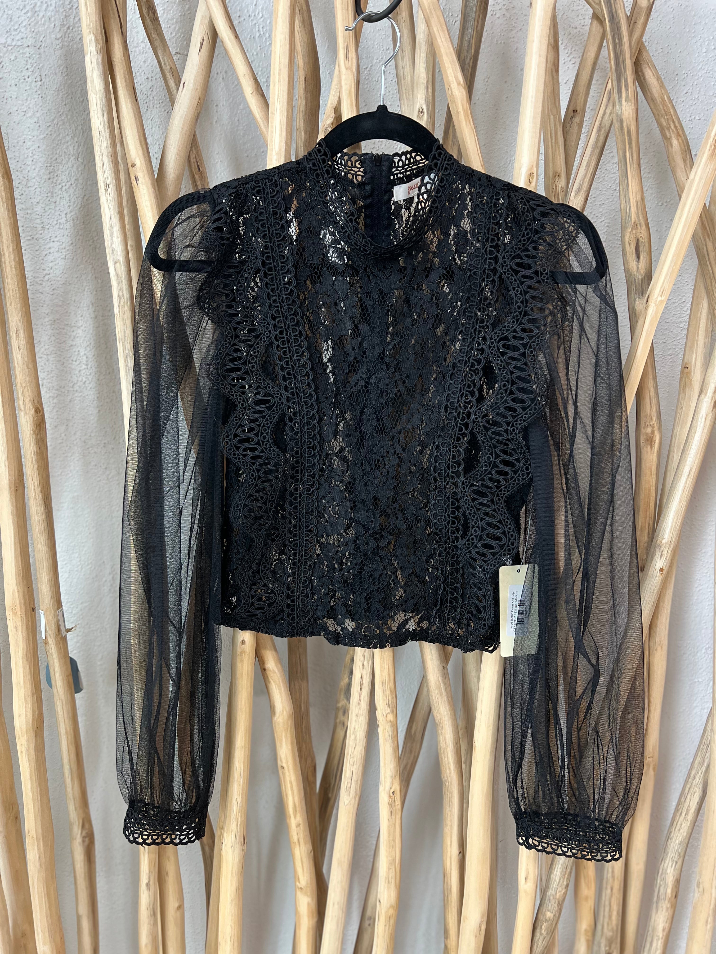 Laced Button Down Knit Top