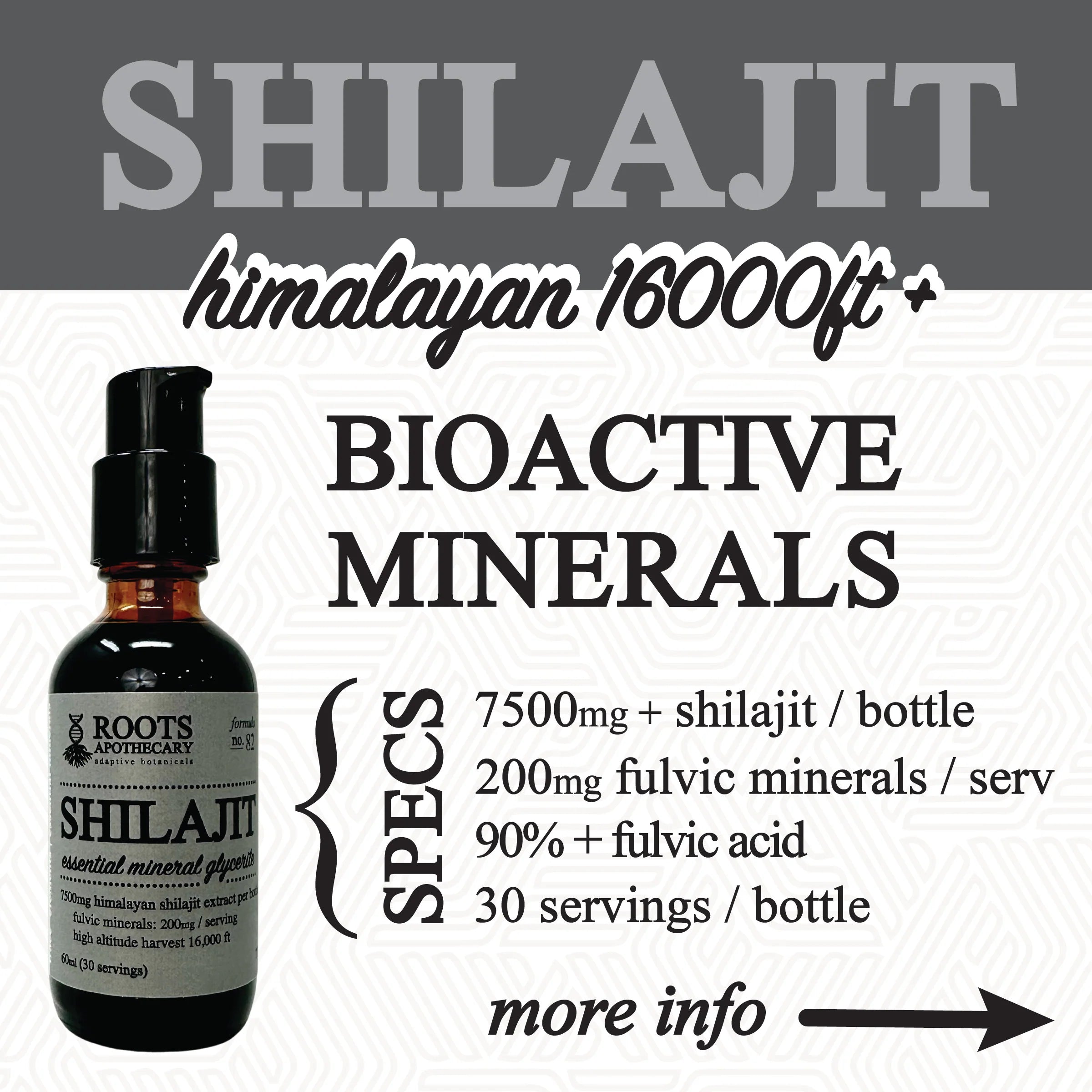 we launched the roots apothecary bioactive shilajit to support all protocols from high tension stress to fatigue dominated brain fog and literally every health and performance goal. improving mineral uptake and utilization on a cellular level improves the stability and function of every mind-body system. stack this shilajt with any roots apothecary tincture or performance adaptogen.