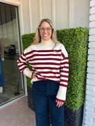 - Color: Off Red White Sangria Stripe